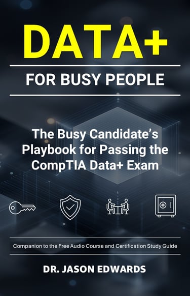 Most CompTIA Data+ candidates are not short on motivation—they’re short on time. Between work, school, family, and everything else competing for attention, traditional resources assume a level of availability that simply doesn’t exist. This book is written for busy professionals and busy students who need to understand how the CompTIA Data+ exam thinks, not just what it covers. It focuses on the decision-making patterns the exam rewards: data quality over speed, clear interpretation over guesswork, and responsible communication over flashy charts.