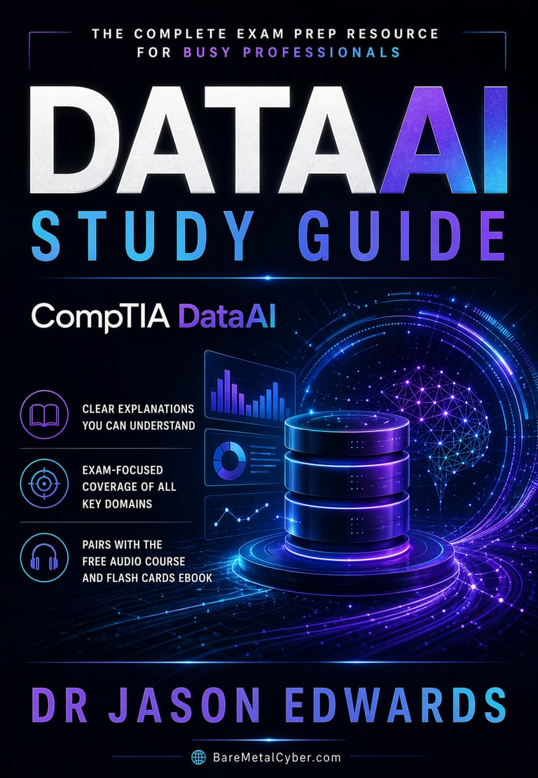 Welcome to The Bare Metal Cyber CompTIA Data+ Audio Course—your practical companion for preparing for the CompTIA Data+ certification. Built for busy professionals who want real, usable analytics skills, this audio course turns the major Data+ topics into clear, structured lessons you can follow anytime, anywhere. Each episode focuses on real workplace context and exam-aligned thinking, helping you understand not just what to study, but how to interpret data scenarios, spot common traps, and choose the best next step. Whether you’re commuting, exercising, or fitting in study time after work, this series is designed to keep you consistent, focused, and moving forward.