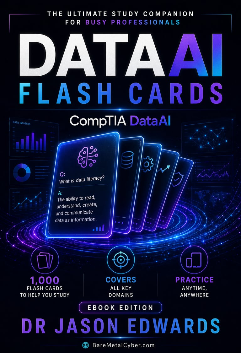 The system is completed by a free, full-length CompTIA Data+ audio course available on BareMetalCyber.com. The audio reinforces concepts through repetition and structured listening, while this book gives you the depth needed to slow down and sharpen understanding. Use them together or separately—either way, the goal is the same: consistent progress, exam-ready thinking, and a study approach that fits real life instead of fighting it.