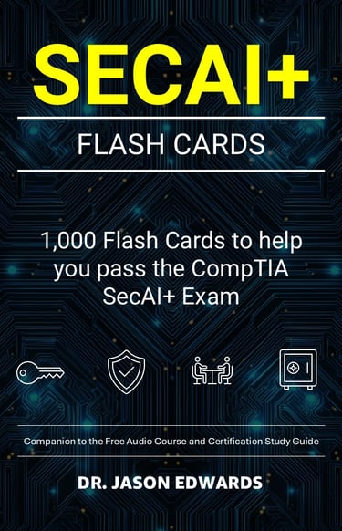 This is not a replacement for your core study guide. It is the reinforcement layer that turns understanding into performance. Used alongside the main SecAI+ For Busy People book and the free CompTIA Security+ AI (SecAI+) audio course from Bare Metal Cyber, these flashcards complete a three-part system designed for busy professionals who need efficient, structured preparation. It is built to help you sharpen recall, tighten your judgment, and reduce second-guessing on test day.