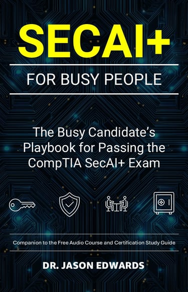 Most CompTIA Security+ AI (SecAI+) candidates are not short on motivation—they are short on time. Between work, AI implementation projects, security posture reviews, and everything else competing for attention, many study resources assume a level of availability that simply is not realistic. This book is written for busy professionals who need to understand how the CompTIA SecAI+ exam thinks, not just what it covers. It focuses on the decision-making patterns the exam rewards: aligning AI security requirements with organizational risk, implementing secure machine learning lifecycles to maintain model integrity, and choosing defensive actions that ensure robust security without compromising innovation velocity.