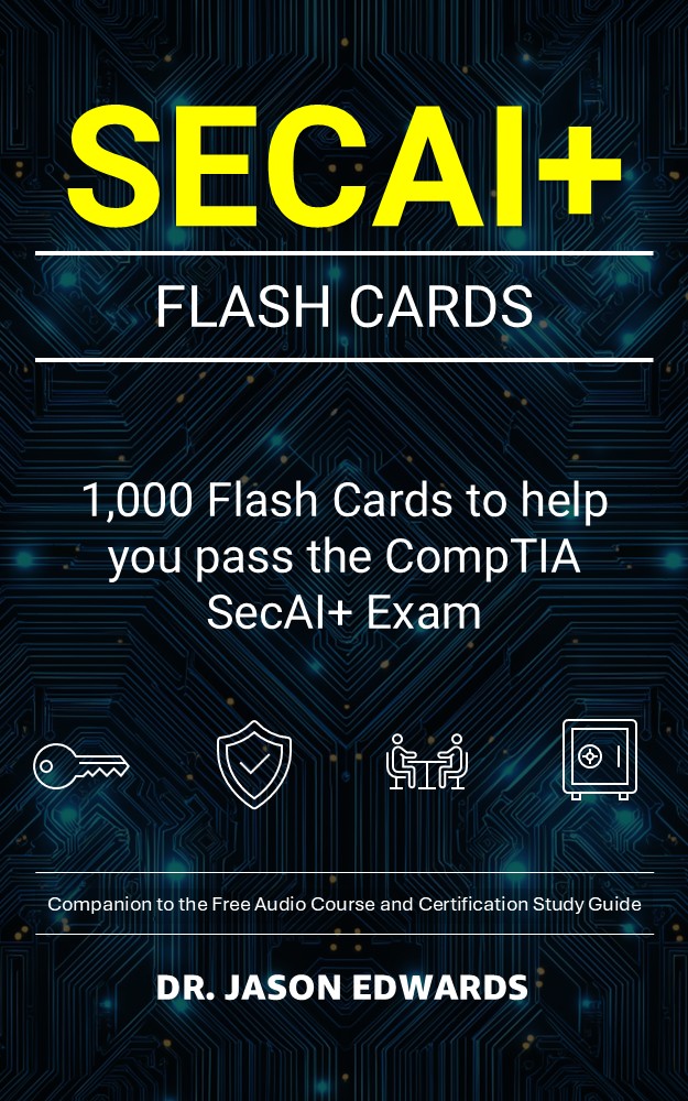 This CompTIA Security+ AI (SecAI+) study system is built as a complete three-part set for busy professionals who need flexibility without losing the specialized AI security expertise, secure machine learning lifecycle knowledge, and adversarial AI defense judgment the certification expects. It begins with a free, audio-first course that walks you through key SecAI+ concepts in clear, structured episodes you can follow anywhere. It then reinforces that foundation with the companion guidebook, SecAI+ For Busy People, which sharpens definitions, connects AI model protection and data privacy principles to real-world technical decisions, and builds the exam-focused judgment CompTIA requires across evolving enterprise AI environments. Finally, the Kindle flashcards eBook drives high-volume practice with 1,000 question-and-answer prompts that span the full scope of the CompTIA SecAI+ exam, helping you strengthen recall, recognize what each question is really testing, and select the best answer consistently under time pressure.