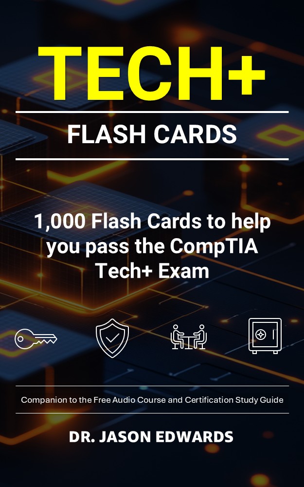 This CompTIA Tech+ study system is built as a complete three-part set for busy people who need flexibility without losing clarity on the fundamentals the exam expects. It starts with a free, audio-first course that walks you through key Tech+ concepts in short, structured episodes you can follow anywhere. It then reinforces that foundation with the companion guidebook, Tech+ For Busy People, which tightens definitions, connects core hardware, software, networking, cloud, security, and troubleshooting ideas to real-world decisions, and builds the exam-ready thinking CompTIA looks for. Finally, the Kindle flashcards eBook provides high-volume practice with 1,000 question-and-answer prompts across the full scope of the CompTIA Tech+ exam, helping you strengthen recall, spot what each question is really testing, and choose the best answer consistently under time pressure.