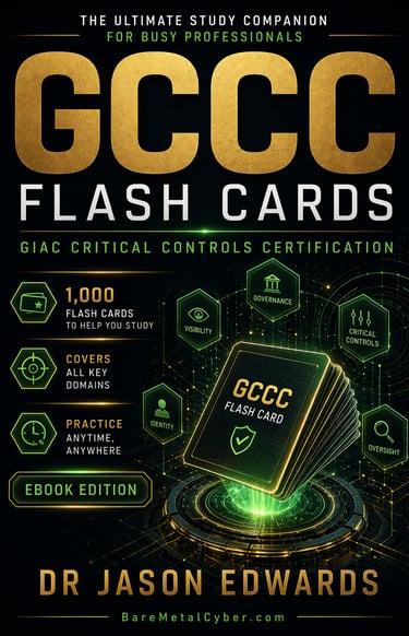 This is not a replacement for your core study guide. It is the reinforcement layer that turns understanding into performance. Used alongside the main GCCC For Busy People book and the free GIAC Critical Controls Certification (GCCC) audio course from Bare Metal Cyber, these flashcards complete a three-part system designed for busy professionals who need efficient, structured preparation. It is built to help you sharpen recall, tighten your judgment, and reduce second-guessing on test day.