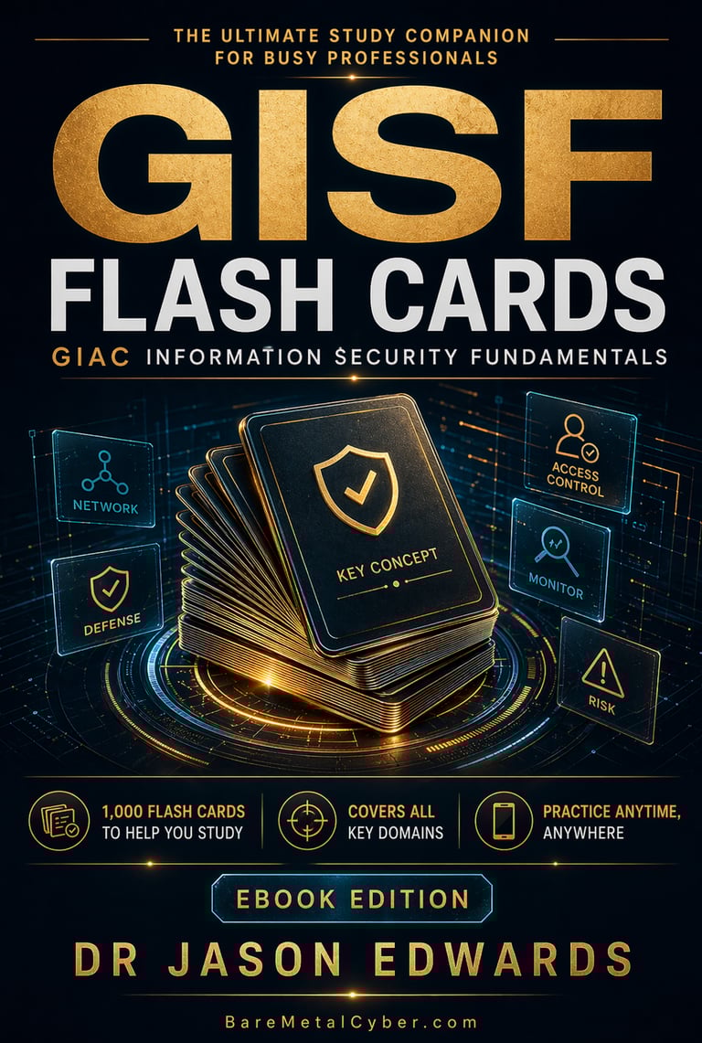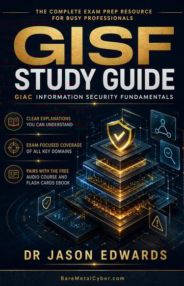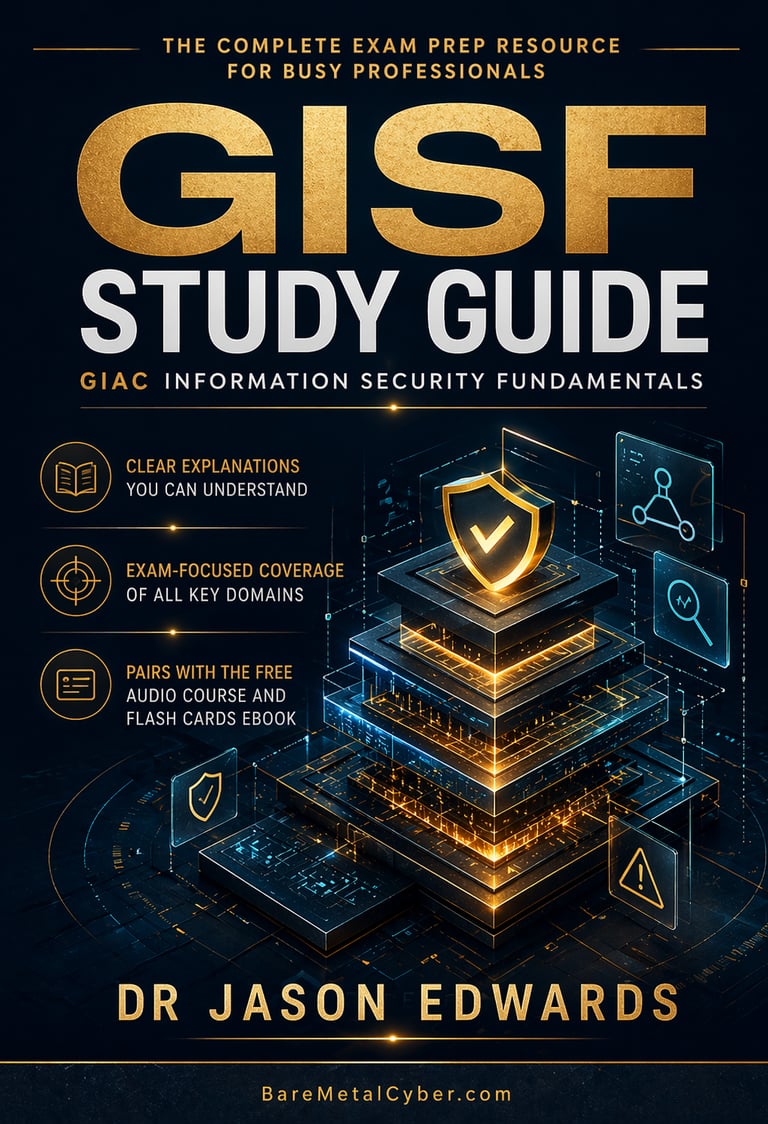 Welcome to The Bare Metal Cyber GIAC Information Security Fundamentals (GISF) Audio Course—your practical companion for preparing for the GISF certification. Built for busy professionals who need a strong, usable foundation in core security principles, networking, and defensive technology fundamentals, this audio course turns the major GISF topics into clear, structured lessons you can follow anytime, anywhere. Each episode stays grounded in real-world security decisions and exam-aligned thinking, helping you understand not just what to study, but how to reason through computer hardware security, network protocols, cryptography, and risk management with confidence. Whether you’re commuting, exercising, or fitting in study time after work, this series is designed to keep you consistent, focused, and moving forward.