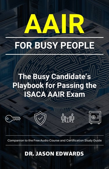 Most AAIR candidates are not short on motivation—they’re short on time. Between work, deadlines, family, and everything else competing for attention, traditional resources assume a level of availability that simply doesn’t exist. This book is written for busy professionals who need to understand how the ISACA Advanced in AI Risk (AAIR) exam thinks, not just what it covers. It focuses on the decision-making patterns the exam rewards: clear governance over vague intentions, defensible controls and evidence over assumptions, and risk-based judgment over checkbox compliance.