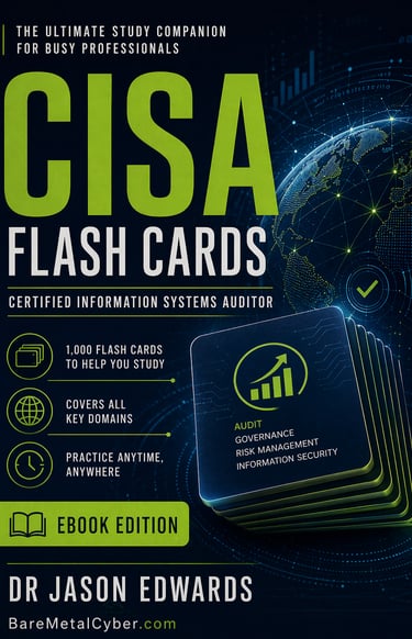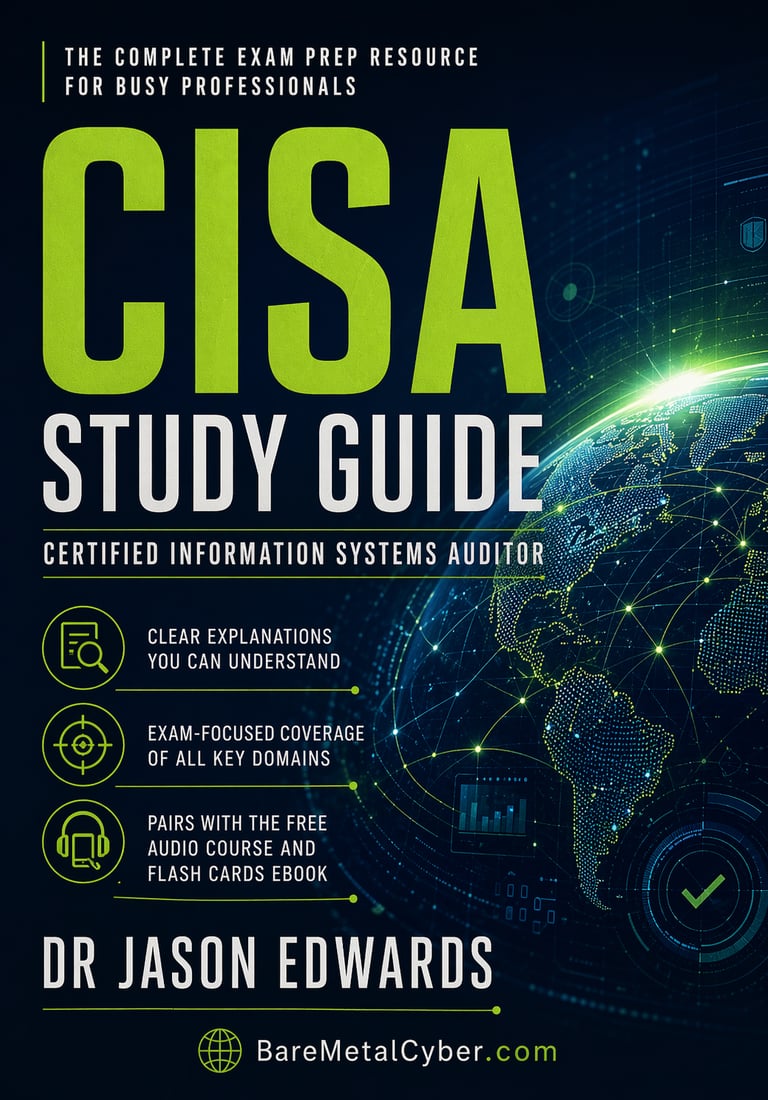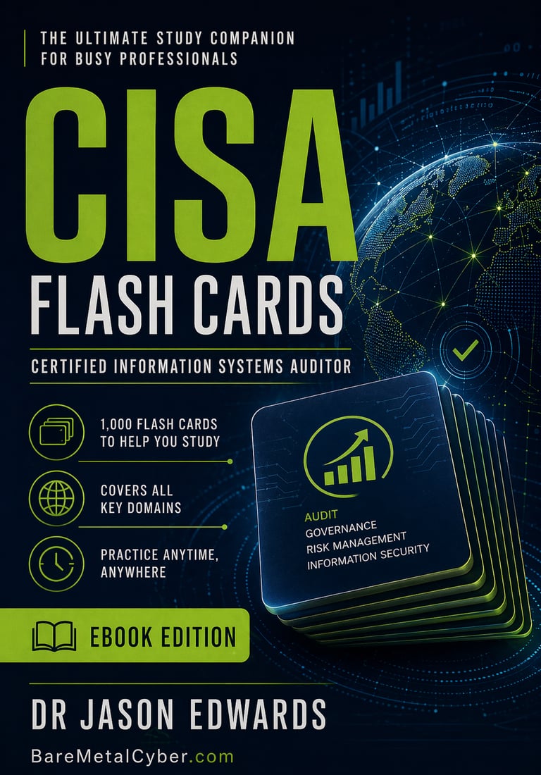 This CISA study system is built as a complete three-part set for professionals preparing to audit, assess, and assure modern information systems with confidence. It begins with a free, audio-first course that transforms the ISACA CISA exam blueprint into clear, structured lessons covering all five domains, including audit processes, IT governance, systems acquisition and development, operations and resilience, and information asset protection. The companion certification guidebook reinforces these same objectives with focused explanations, audit-oriented clarity, and structured reasoning that reflects how CISA questions are framed. The Kindle flash cards book completes the system with more than 1,000 question-and-answer prompts, driving high-volume practice that sharpens judgment, reinforces audit logic, and builds the speed and confidence needed to perform consistently on exam day and in real-world assurance roles.