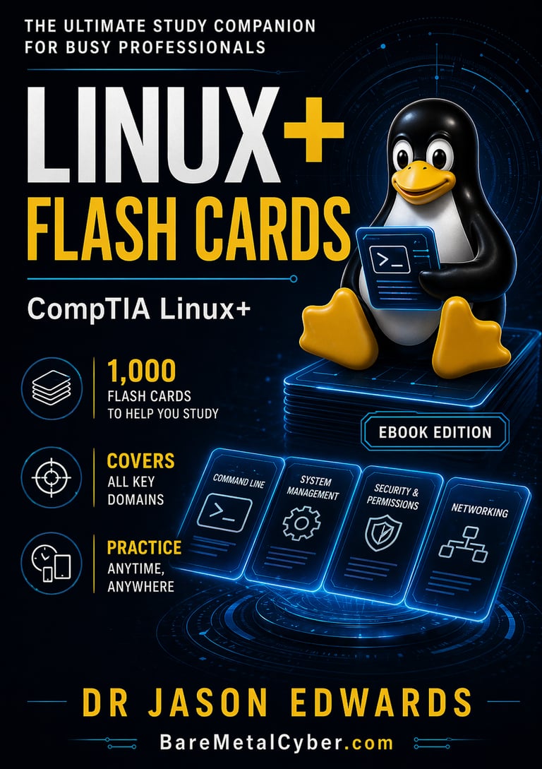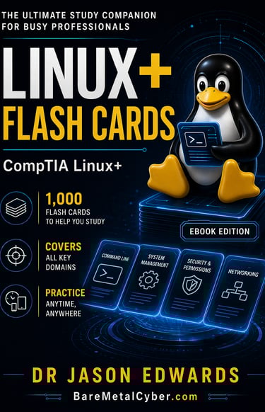 This is not a replacement for your core study guide. It is the reinforcement layer that turns understanding into performance. Used alongside the main linux+ For Busy People book and the free linux+ audio course from Bare Metal Cyber, these flashcards complete a three-part system designed for busy professionals who need efficient, structured preparation. If you want to sharpen recall, tighten your Linux instincts, and reduce second-guessing on test day, this book is built for that purpose.